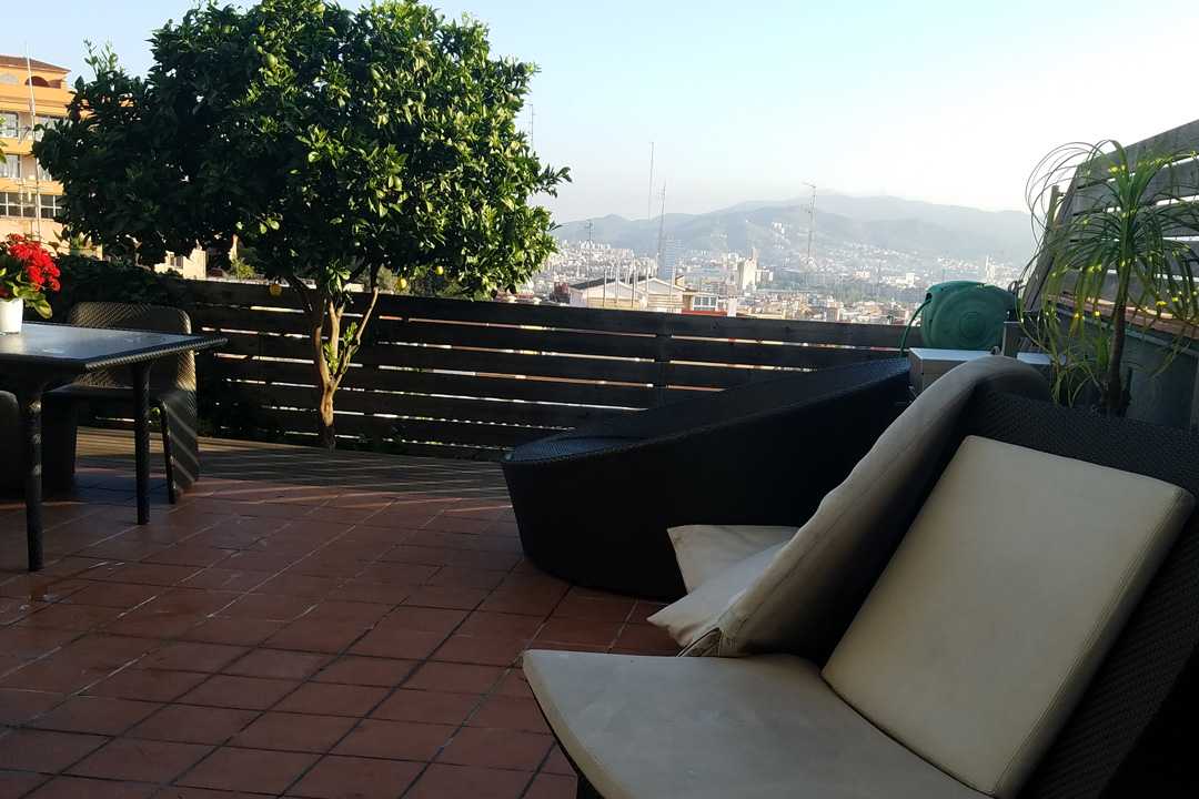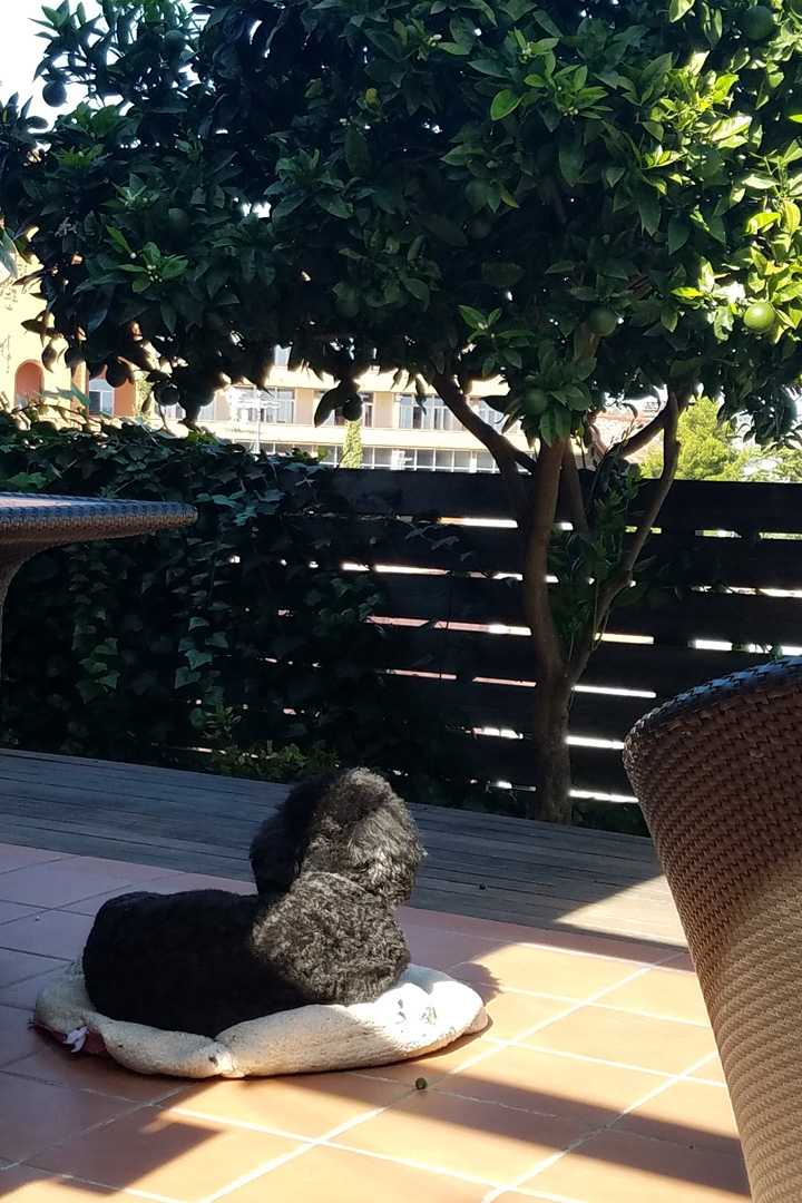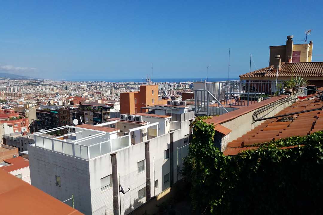Our home away from home is a townhouse with a beautiful view of Barcelona. The biggest attractions of the place are its proximity to the kids' school, large patio overlooking the city, and room for visitors. Located in the neighborhood of Guinardó, in the hills above the center of the city but just a short metro ride away from it, it is next to the large Park del Guinardó. Spain is at the extreme western end of the central Europe time zone, so the sun rises quite late. This means we can watch the sun rise over the city every morning over coffee. Lusi has quickly adapted to spending most of the day on the terrace.