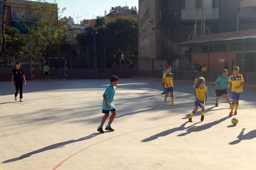 We signed Henry up for a neighborhood soccer team, and he had his first game today. Some differences will take some time to get used to: no shin-guards, playing on hardscape rather than grass (or turf) and kids are allowed to head the ball.