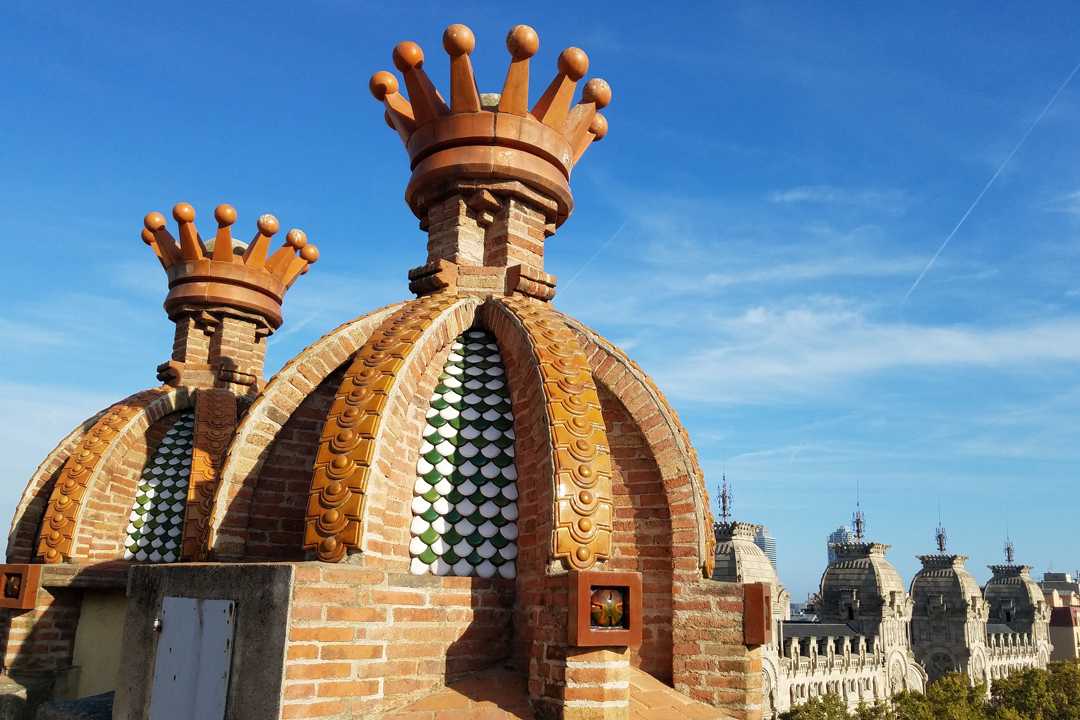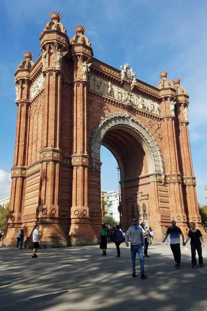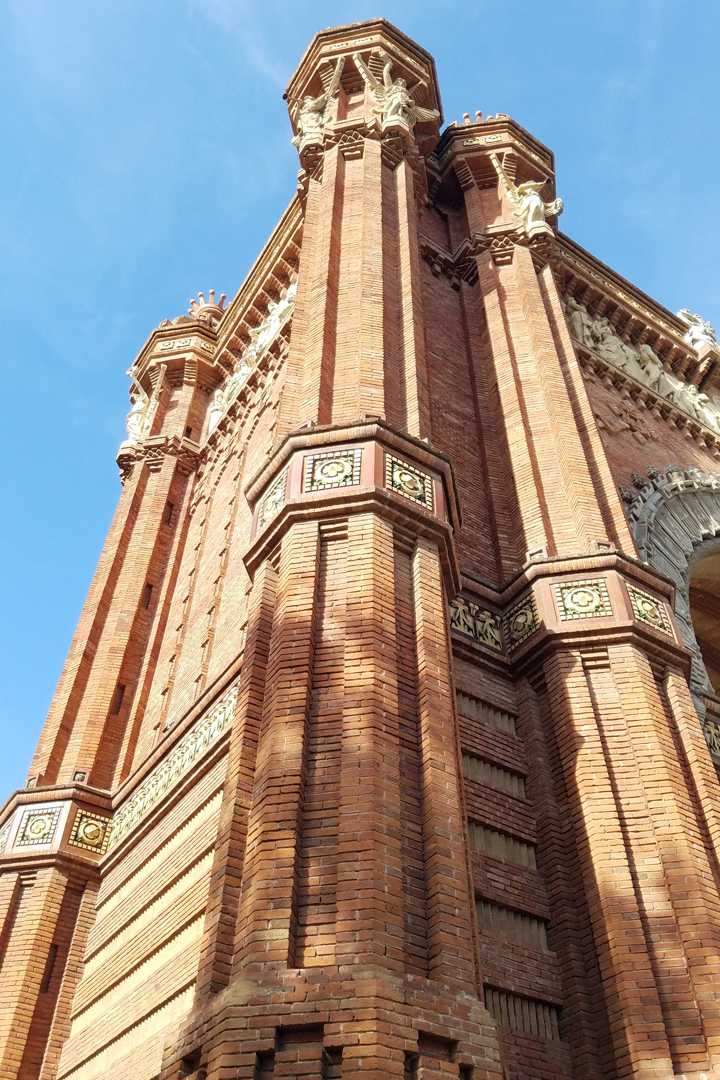 This weekend the top of the Arc de Triomf was open to the public as part of the annual 48 Hours Open House Barcelona. I waited in line for an hour and a half to make the climb up the narrow spiral staircase. I went on my own because kids weren't allowed. A short presentation in Spanish preceded the climb, and though I didn't catch all of it I gleaned that unlike similar monuments (in Paris for instance), Barcelona's arch is not associated with any military victory. The arch marked the entrance to the 1888 Barcelona World Fair and was built by architect Josep Vilaseca i Casanovas in a style known as Neo-Mudejar, a Moorish Revival style.