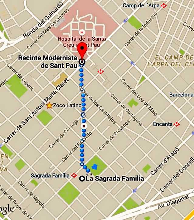 Merely 900 meters separate the structures, a short and pleasant walk down Avinguda de Gaudi.