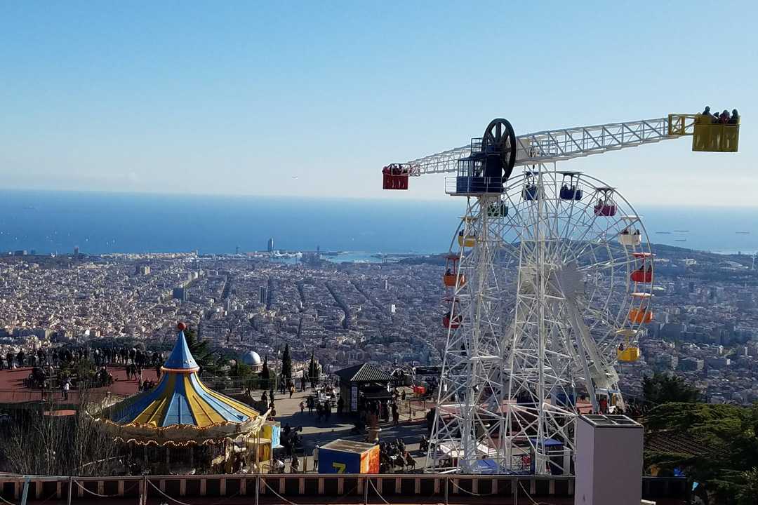 Adjacent to the monumental twentieth-century sanctuary is the Tibidabo amusement park, easily recognizable from afar by its Ferris wheel. The amusement park itself isn’t much, but it seems to hang from the side of the hill and offers dramatic views of Barcelona and the coast.
