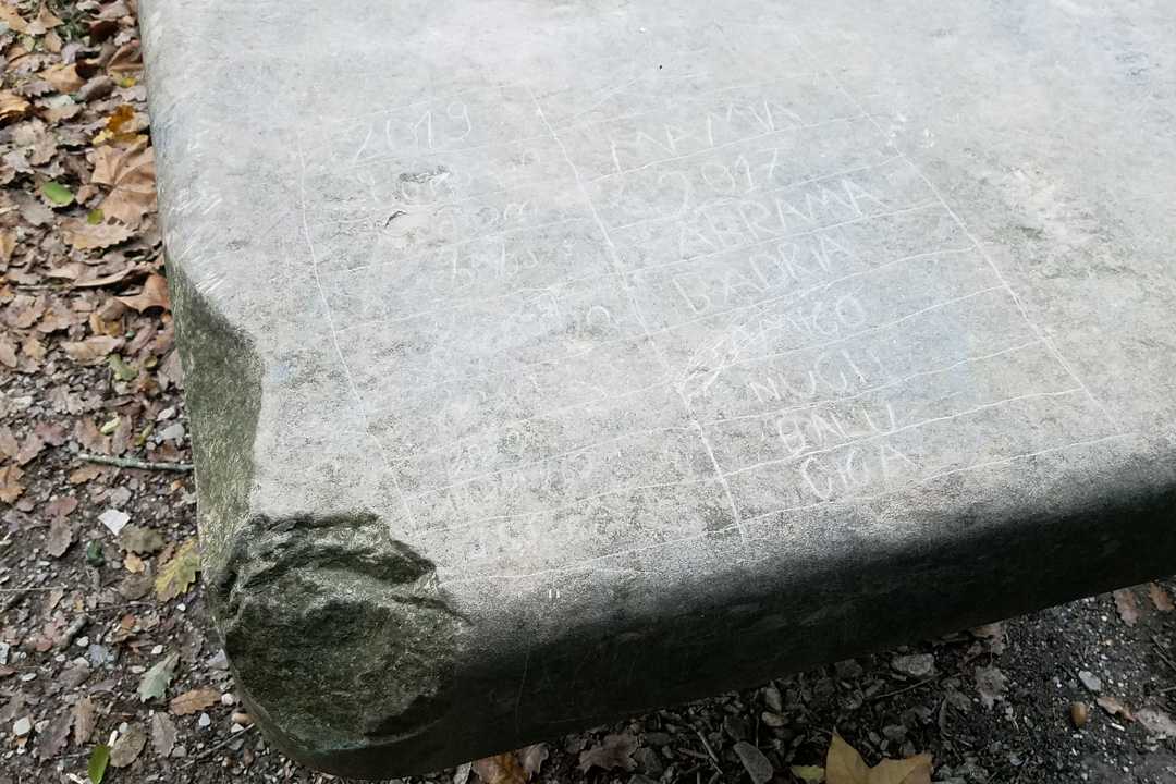Along the way we happened upon a stone cousin of our familiar wooden picnic table.
