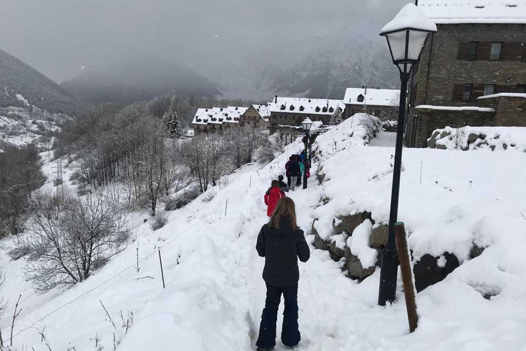 From Sarah...it wasn't an ideal week, from a meteorological point of view. The ski area was completely closed one day due to high winds, possibly due to the same storm that hit Barcelona. The kids still enjoyed themselves in the snow, though some parents were very upset about it (from a distance).