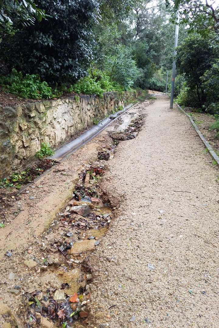 Many trees were down in Barcelona. The grounds crew in Parc del Guinardo has their work cut out for them. Erosion is an ongoing problem in this hilltop park - the paths wash out in any significant rainstorm. The runnels created by Gloria were dramatic.